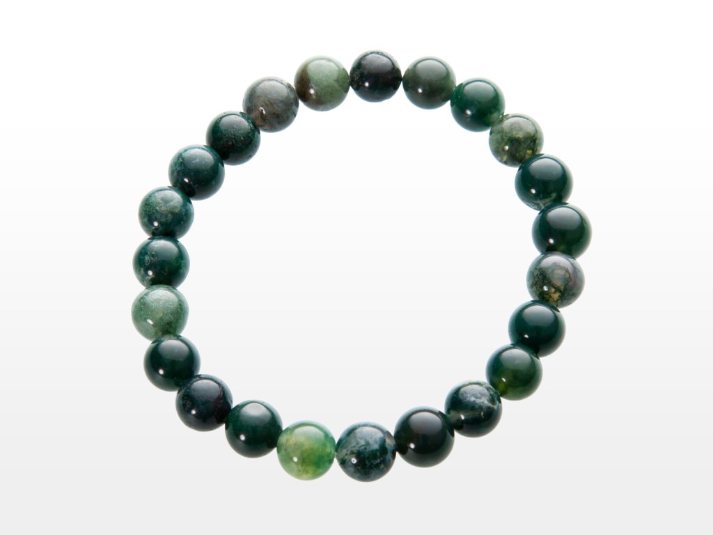 O produktu: Kuličkový náramek je nadčasová klasika. Tento kousek je vyroben z lesklých kuliček mechového achátu o průměru 8 mm. Je navlečený na dvojité elastické gumičce o délce přibližně 19 cm. Je pružný a sedí každé velikosti.