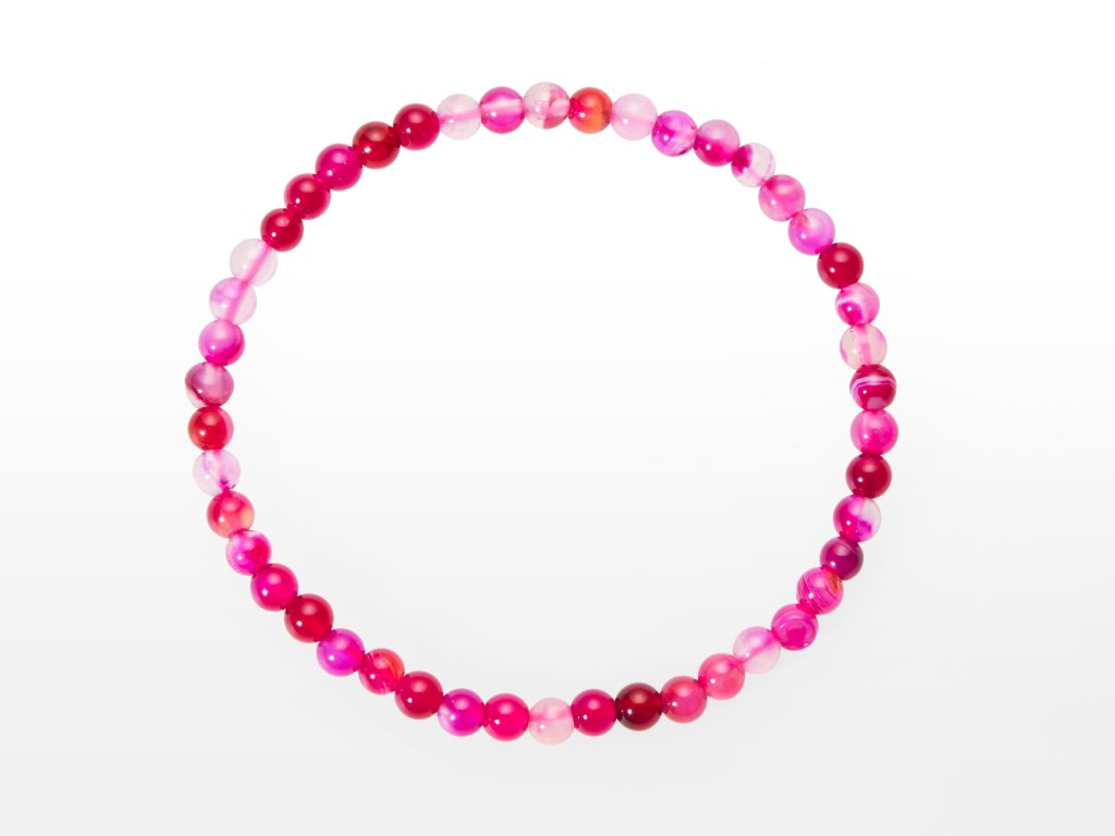 O produktu: Kuličkový náramek je nadčasová klasika. Tento kousek je vyroben z lesklých kuliček růžového achátu o průměru 4 mm. Je navlečený na dvojité elastické gumičce o délce přibližně 18 cm. Je pružný a sedí každé velikosti.