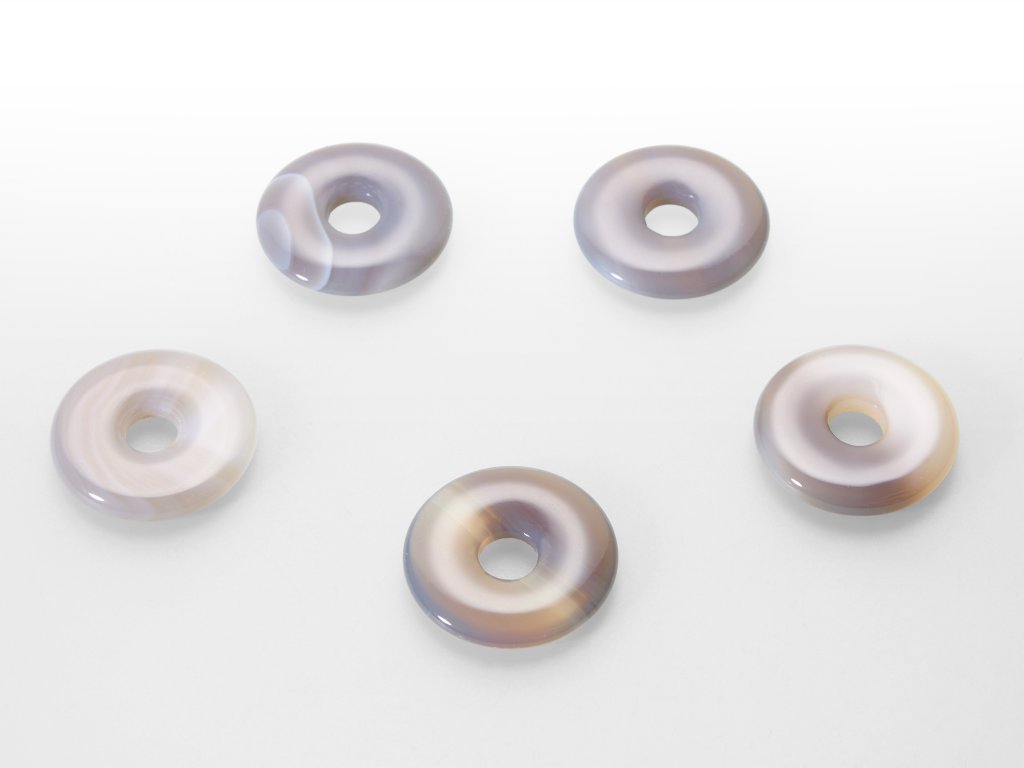 O produktu: Starobylý tvar donutu se dvěma soustřednými kruhy symbolizuje harmonii, jednotu a štědrost. Svým vzhledem připomíná starověké mince, proto se mu přisuzuje mimo jiné i schopnost přitahovat bohatství. Broušené donuty z drahých kamenů mohou sloužit jako originální přívěsek na krk, nebo jako talisman do kapsy. Donut lze navléct na kůži, šňůrku či řetízek. Jeho průměr je 30 mm.