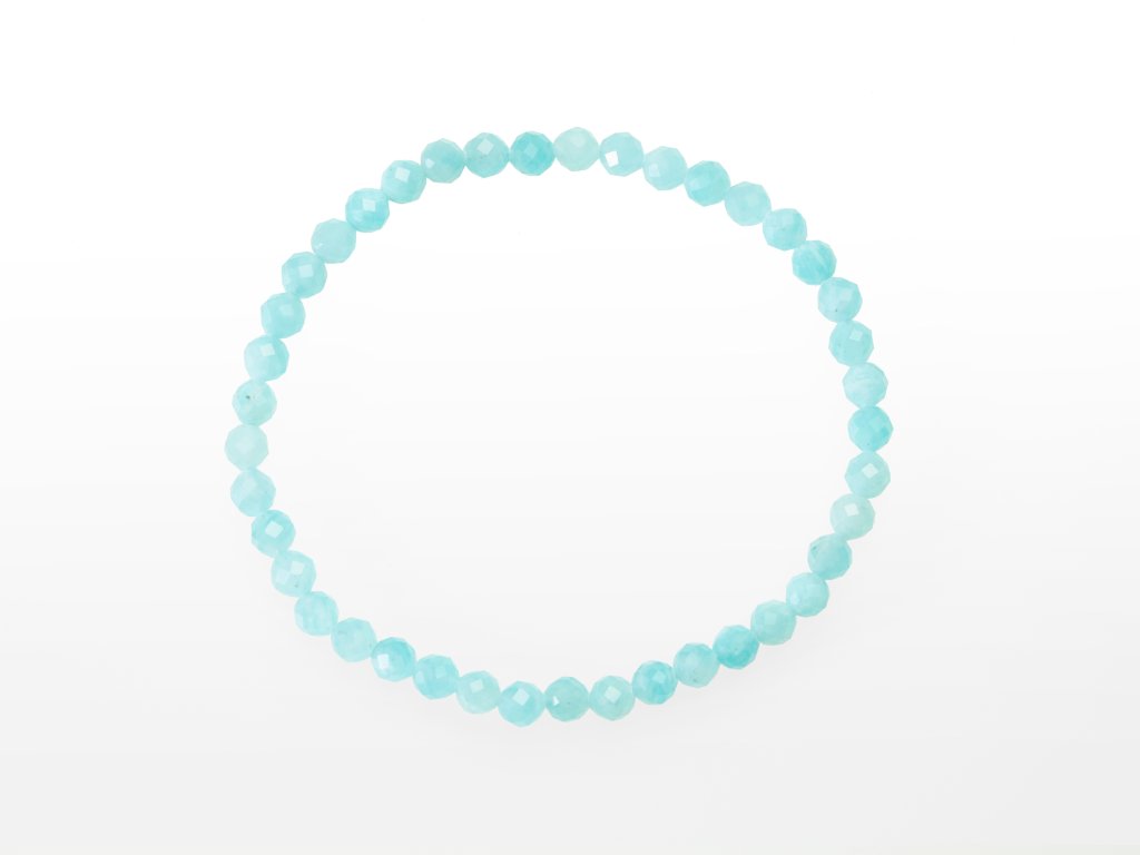 O produktu: Náramek z fazetovaných kuliček amazonitu o průměru 4 mm. Fazetování je proces vybrušování hladkých plošek mnohoúhelníkového tvaru. Tato úprava dodává kuličkám výjimečný třpyt – fazetované náramky jsou tak elegantním doplňkem vhodným i ke společenskému outfitu. Kuličky jsou navlečeny na dvojité elastické gumičce o délce přibližně 18 cm, jsou pružné a sedí každé velikosti.