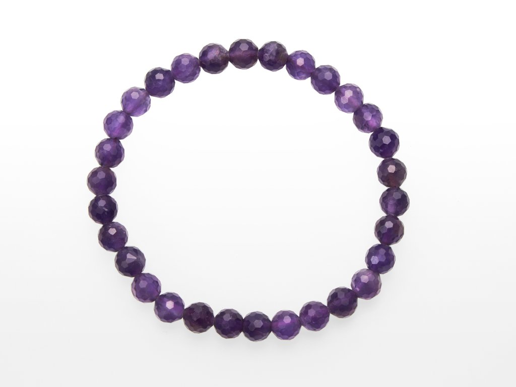 O produktu: Náramek z fazetovaných kuliček ametystu o průměru 5-6 mm. Fazetování je proces vybrušování hladkých plošek mnohoúhelníkového tvaru. Tato úprava dodává kuličkám výjimečný třpyt – fazetované náramky jsou tak elegantním doplňkem vhodným i ke společenskému oděvu. Kuličky jsou navlečeny na dvojité elastické gumičce o délce přibližně 18 cm, jsou pružné a sedí každé velikosti.