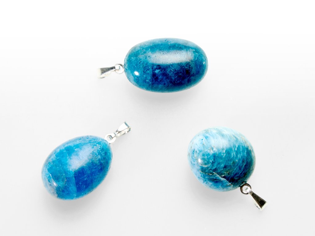 Popis kamene: Apatit je unikátní svou barevnou rozličností, existuje v celé škále variant od bezbarvé, bílé, žluté, růžové, zelené, modré, až po fialovou. Odtud i jeho název – řecké slovo apatán v češtině znamená klamat. Tento kus nabízí krásné modré odstíny, které leckdy plynule přechází do tyrkysových tónů. Většinou dosahuje zrnitého vzhledu. Z hlediska složení jde o nejrozšířenější přírodní fosforečnan.