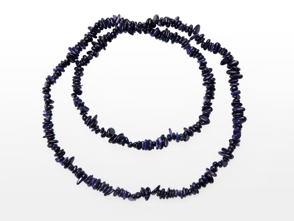 O produktu: Dlouhý náhrdelník vyrobený z drobných ohlazených úlomků modrého avanturínu. Díky nepravidelnému tvaru a rozmanitosti minerálů je každý náhrdelník naprostým unikátem - skvělá volba pro ty, kteří hledají ležérní, a přesto elegantní doplněk s přírodním šarmem pro každodenní nošení. Dlouhé náhrdelníky nemají kovové zapínání, jejich délka 80-90 cm totiž umožňuje jednoduché navlékání přes hlavu.