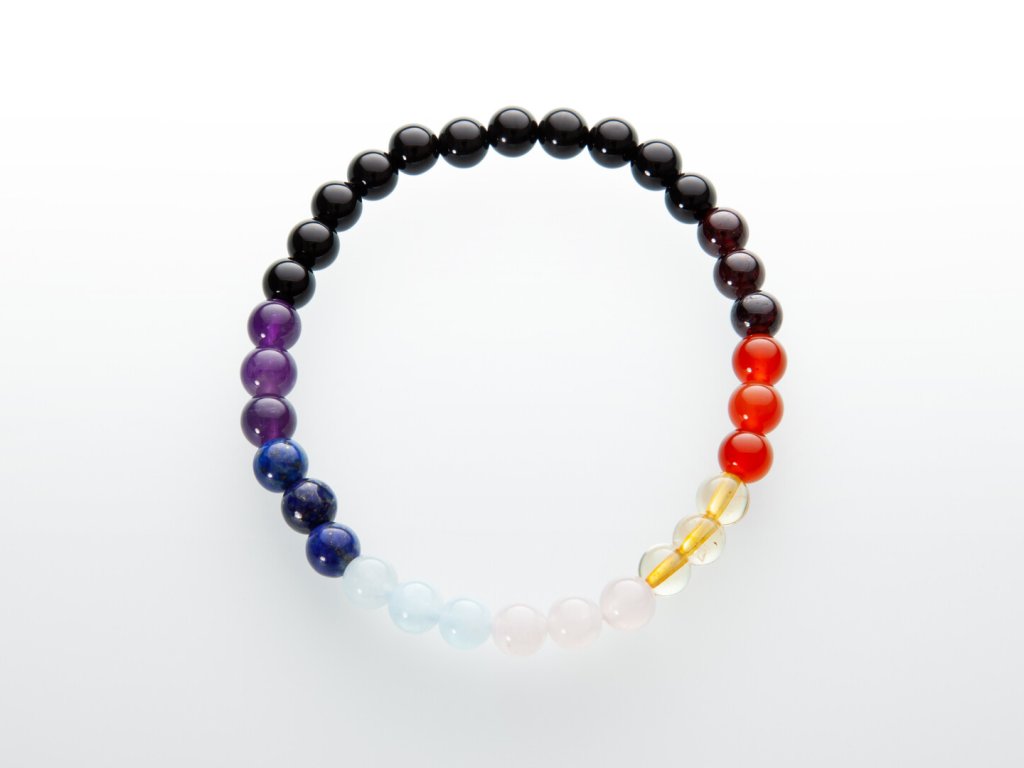 O produktu: Kuličkový náramek je nadčasová klasika. Tento kousek je vyroben z lesklých kuliček černého onyxu a minerálů v barvách čakrových center, jako je např. ametyst, lapis, citrín a karneol. Nabízí tak atraktivní barevnou kombinaci několika druhů kamenů. Kuličky mají průměr 6 mm a jsou navlečeny na dvojité elastické gumičce o délce přibližně 19 cm. Náramek je pružný a sedí každé velikosti.