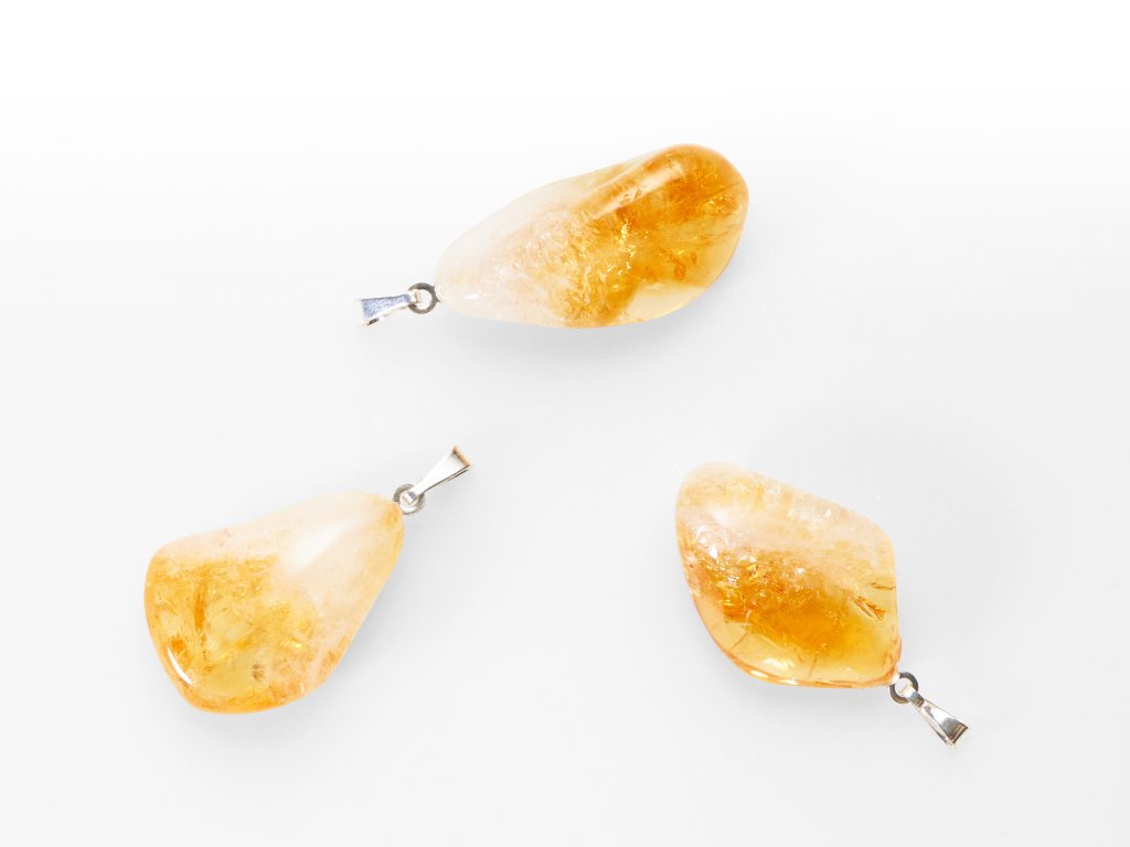 Popis kamene: Žlutý jako citrón, odtud i jeho název z latinského citrina. Citrín je atraktivní verze křemene, surovina je však v přírodě velmi vzácná, proto se citrín často vyrábí vypalováním z ametystu - jeho zahřátím nad 350 °C se mění původně dvojmocné železo v ametystu na trojmocné, což vede ke změně fialové barvy na žlutou. Stejný původ má i tento citrín. Citríny zpracované z kvalitního brazilského ametystu vynikají zlatavým odstínem žluté a patří mezi oblíbené kameny, jež nahrazují cenově nedostupné přírodní citríny. V tomto kameni se mísí žluté odstíny citrínu s bílými křemennými částmi.