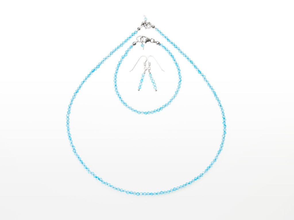 About the product: The set includes a sterling silver necklace, bracelet and earrings with precisely faceted beads of the mineral measuring 3 mm. The jewellery is carefully made in our workshop from sterling silver components of fineness 925/1000. The necklace and bracelet are strung on a strong stainless steel wire and finished with a high-quality sterling silver clasp. The dangling earrings are strung on a sterling silver head pin and finished with a sterling silver fish hook ear wire. The necklace is 45 cm long, the bracelet is 19.5 cm long. We send the jewellery set in gift packaging.