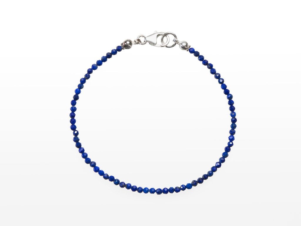 Sterling Silver Bracelet Lapis Faceted 2 mm