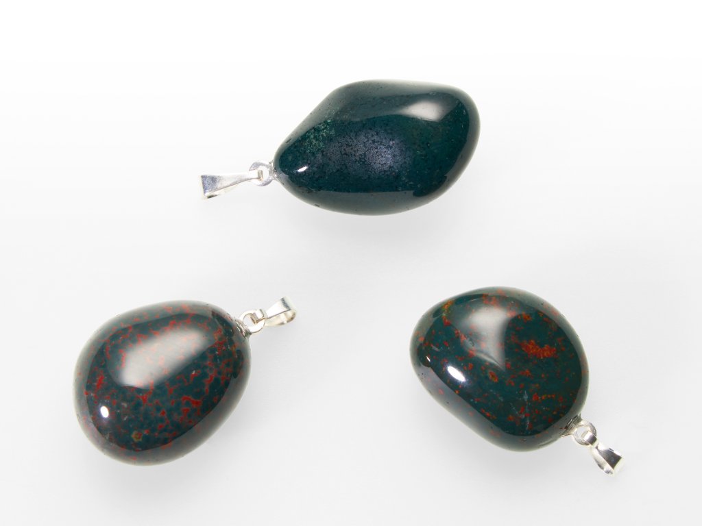 Popis kamene: Minerál pro opravdové znalce. Heliotrop z dolů Morvi v oblasti Rajkot v Indii spadá pod odrůdu zeleného chalcedonu s efektními červenými tečkami, které jsou způsobeny příměsí. Heliotrop je specifický temně zeleně zbarveným podkladem, na němž se nádherně vyjímají červené tečky ve velikosti 1 až 3 mm - dle nich se kámen označuje také jako "blood stone", jelikož skvrny připomínají kapky Kristovy krve.
