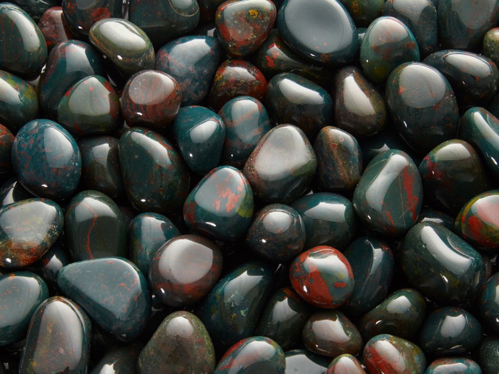 Popis kamene: Minerál pro opravdové znalce. Heliotrop z dolů Morvi v oblasti Rajkot v Indii spadá pod odrůdu zeleného chalcedonu s efektními červenými tečkami, které jsou způsobeny příměsí. Heliotrop je specifický temně zeleně zbarveným podkladem, na němž se nádherně vyjímají červené tečky ve velikosti 1 až 3 mm - dle nich se kámen označuje také jako "blood stone", jelikož skvrny připomínají kapky Kristovy krve.