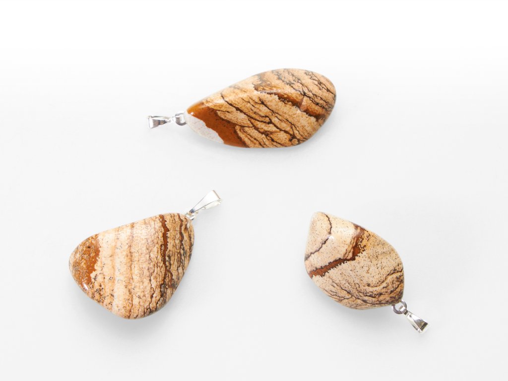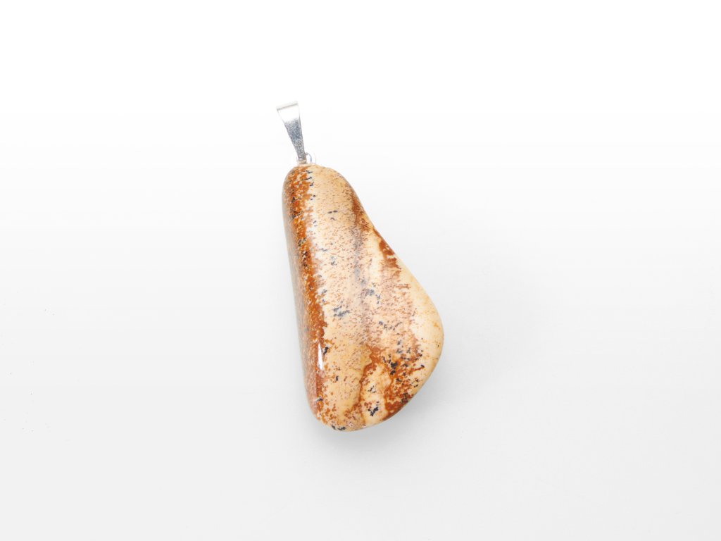 Popis kamene: Jaspisy tvoří vlivem obsahu velkého množství příměsí pestrobarevnou skupinu kamenů. Jaspis obrázkový za své hnědé zabarvení vděčí železitým oxidům. Jeho barevné partie často vykreslují zajímavé „obrázkové“ motivy, což mu přiřknulo i samotný název. Surovina pochází z JAR. Z hlediska složení se jedná o odrůdu chalcedonu, což je obecný název pro vláknitý kryptokrystalický křemen.