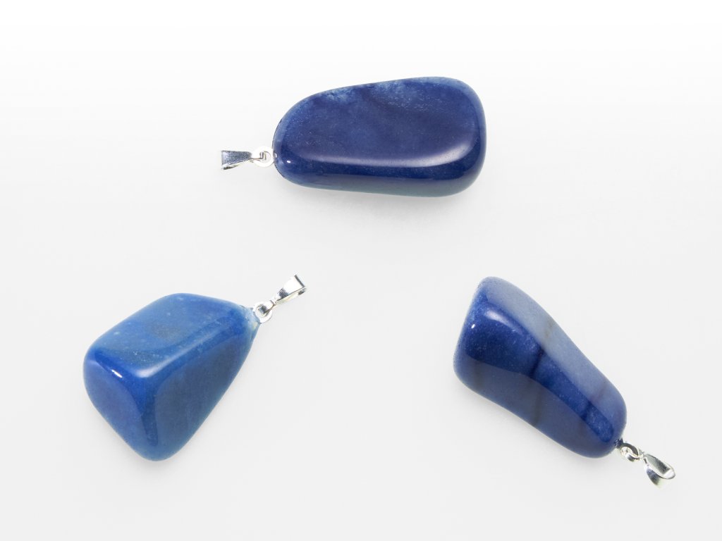 Popis kamene: Velmi zajímavá barevná odrůda kryptokrystalického křemene, která se vyskytuje v podobě žil a bloků v mateční hornině. Křemen modrý se získává na několika světových nalezištích, přičemž k těm nejznámějším patří lokality v brazilském státě Minas Gerais. Je modrý, neprůhledný až průsvitný. Křemen modrý za své zabarvení vděčí mikroskopickým vláknitým vrostlicím modrých křemičitanů. Na trhu s drahými kameny se objevil teprve nedávno a používá se hlavně na výrobu sošek a drobných ozdobných předmětů.