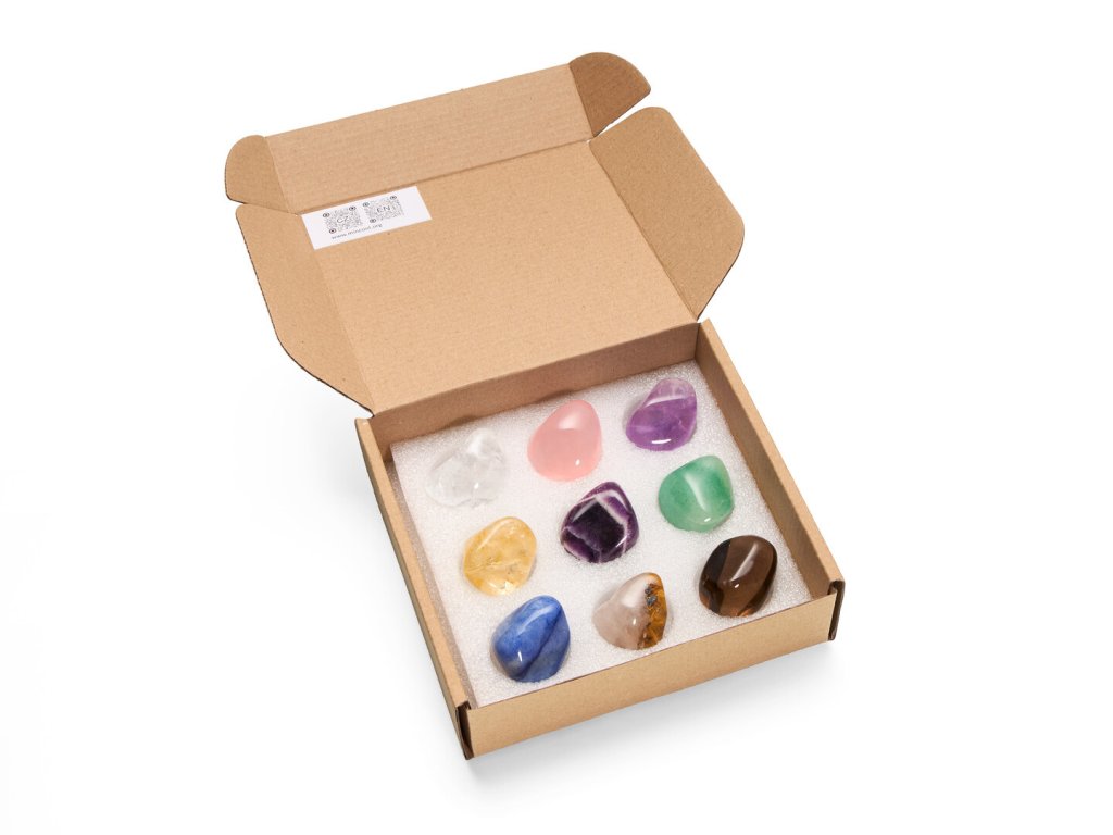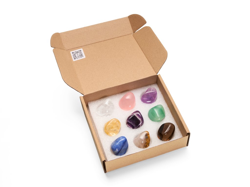 Kameny jsou uloženy v elegantní a pevné dárkové krabičce z kvalitní lepenky. Díky praktickému zavírání a speciálnímu polstrování jsou kameny chráněny z obou stran, nemusíte se tak obávat poškození či rozsypání při přepravě.