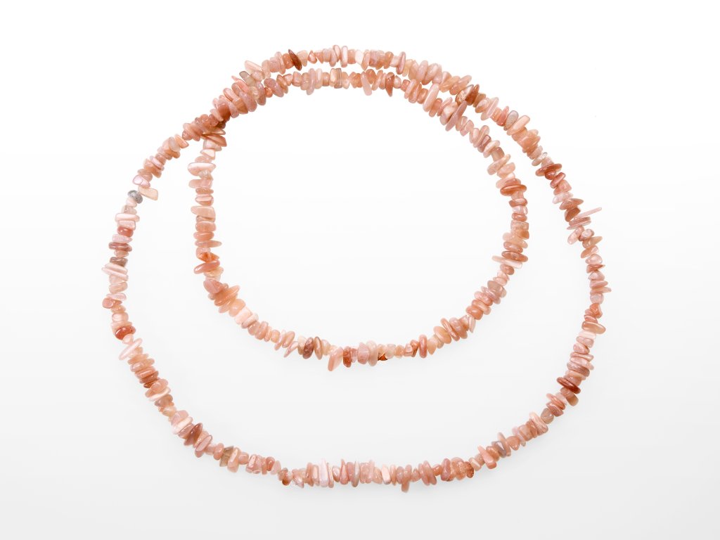 O produktu: Dlouhý náhrdelník vyrobený z drobných ohlazených úlomků měsíčního a slunečního kamene. Díky nepravidelnému tvaru a rozmanitosti minerálů je každý náhrdelník naprostým unikátem - skvělá volba pro ty, kteří hledají ležérní, a přesto elegantní doplněk s přírodním šarmem pro každodenní nošení. Dlouhé náhrdelníky nemají kovové zapínání, jejich délka 80-90 cm totiž umožňuje jednoduché navlékání přes hlavu.