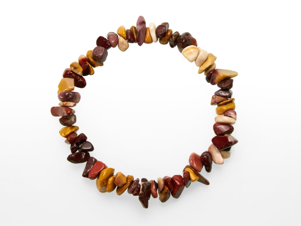 O produktu: Sekané náramky jsou neprodávanějším druhem šperku z minerálů. Tento je vyroben z drobných ohlazených úlomků mokaitu. Každý kamínek má jiný tvar, šperk je tedy vhodný pro ty, co dávají přednost kouzlu nahodilosti před pravidelností. Náramky jsou navlečeny na dvojité elastické gumičce o délce přibližně 19 cm. Jsou pružné a sedí každé velikosti.