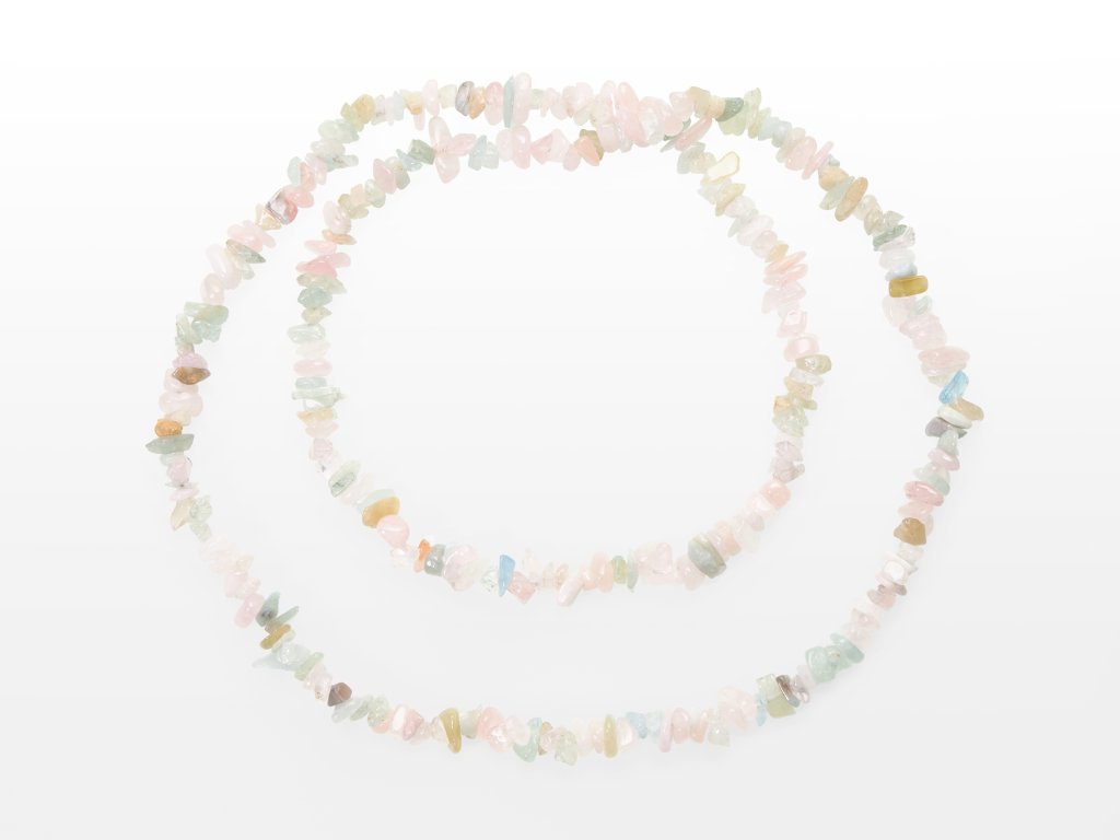 O produktu: Dlouhý náhrdelník vyrobený z drobných ohlazených úlomků morganitu. Díky nepravidelnému tvaru a rozmanitosti minerálů je každý náhrdelník naprostým unikátem - skvělá volba pro ty, kteří hledají ležérní, a přesto elegantní doplněk s přírodním šarmem pro každodenní nošení. Dlouhé náhrdelníky nemají kovové zapínání, jejich délka 80-90 cm totiž umožňuje jednoduché navlékání přes hlavu.