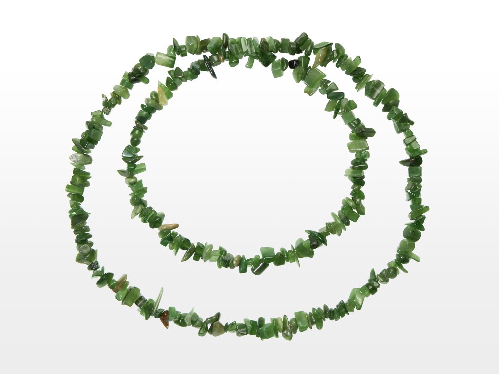 O produktu: Dlouhý náhrdelník vyrobený z drobných ohlazených úlomků nefritu. Díky nepravidelnému tvaru a rozmanitosti minerálů je každý náhrdelník naprostým unikátem - skvělá volba pro ty, kteří hledají ležérní, a přesto elegantní doplněk s přírodním šarmem pro každodenní nošení. Dlouhé náhrdelníky nemají kovové zapínání, jejich délka 80-90 cm totiž umožňuje jednoduché navlékání přes hlavu.
