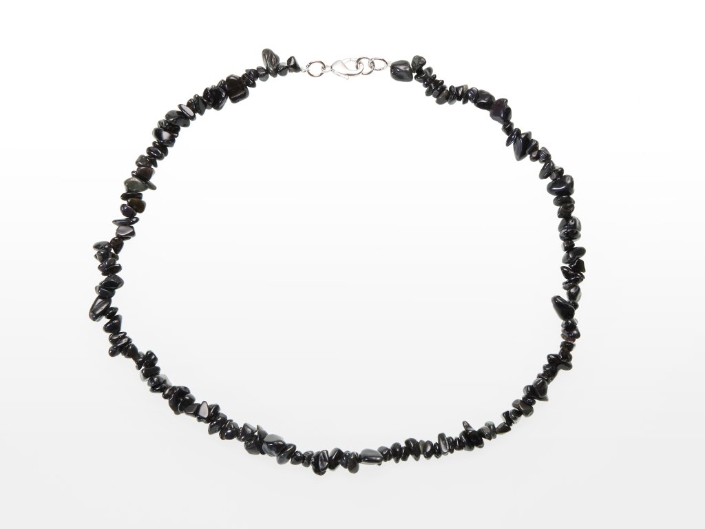 O produktu: Náhrdelník vyrobený z drobných ohlazených úlomků černého obsidiánu. Díky nepravidelnému tvaru a rozmanitosti minerálů je každý náhrdelník naprostým unikátem - skvělá volba pro ty, kteří hledají ležérní, a přesto elegantní doplněk s přírodním šarmem pro každodenní nošení. Náhrdelníky mají délku 40-45 cm a jsou ukončené zapínáním ze stříbřeného tombaku. Šperk neobsahuje nikl, je tedy vhodný i pro citlivou pokožku.