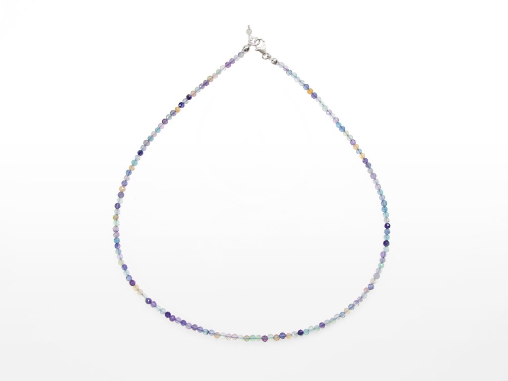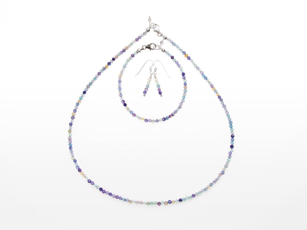 Srebrny zestaw biżuterii fluoryt fasetowany 3 mm (naszyjnik + bransoletka + kolczyki)