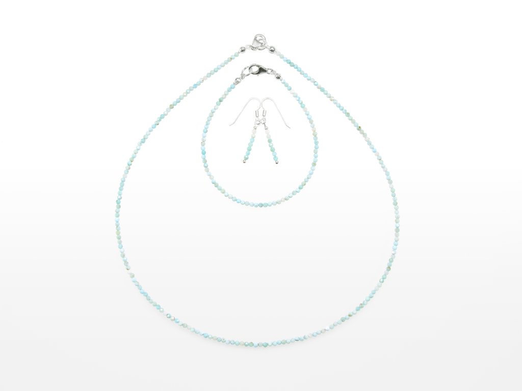 Srebrny zestaw biżuterii larimar fasetowany 2 mm (naszyjnik + bransoletka + kolczyki)