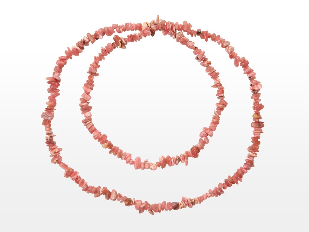 O produktu: Dlouhý náhrdelník vyrobený z drobných ohlazených úlomků rodochrozitu v extra kvalitě. Díky nepravidelnému tvaru a rozmanitosti minerálů je každý náhrdelník naprostým unikátem - skvělá volba pro ty, kteří hledají ležérní, a přesto elegantní doplněk s přírodním šarmem pro každodenní nošení. Dlouhé náhrdelníky nemají kovové zapínání, jejich délka 80-90 cm totiž umožňuje jednoduché navlékání přes hlavu.