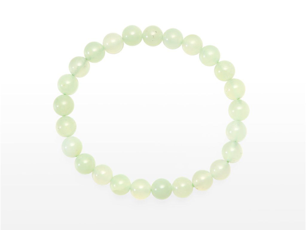 Korálikový náramok je nadčasová klasika. Tento kúsok je vyrobený z lesklých korálikov serpentinu s priemerom 8 mm. Je navlečený na dvojitej elastickej gumičke s dĺžkou približne 19 cm. Je pružný a sadne na každú veľkosť.