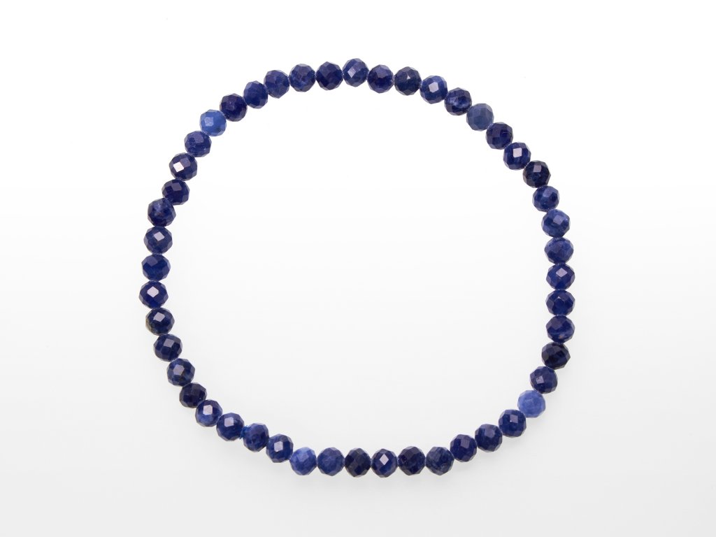 O produktu: Náramek z fazetovaných kuliček sodalitu o průměru 4 mm. Fazetování je proces vybrušování hladkých plošek mnohoúhelníkového tvaru. Tato úprava dodává kuličkám výjimečný třpyt – fazetované náramky jsou tak elegantním doplňkem vhodným i ke společenskému oděvu. Kuličky jsou navlečeny na dvojité elastické gumičce o délce přibližně 18 cm, jsou pružné a sedí každé velikosti.