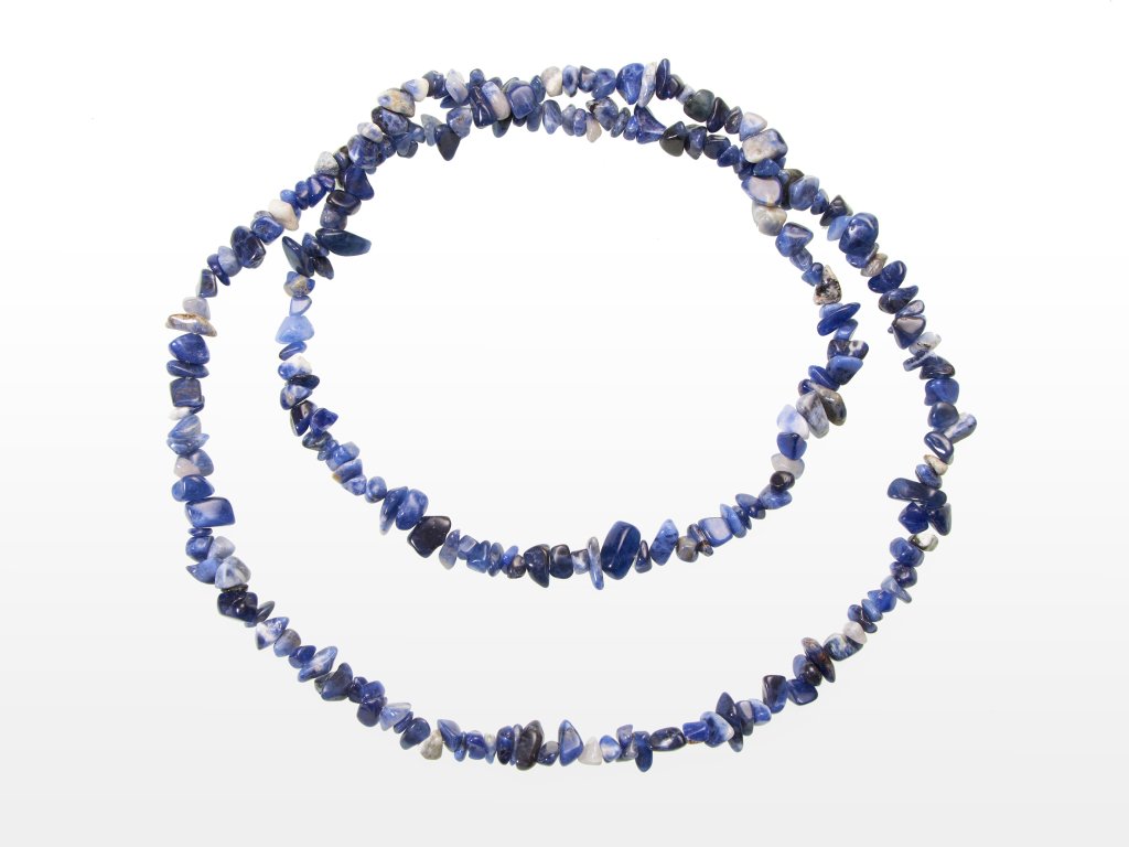 O produktu: Dlouhý náhrdelník vyrobený z drobných ohlazených úlomků sodalitu. Díky nepravidelnému tvaru a rozmanitosti minerálů je každý náhrdelník naprostým unikátem - skvělá volba pro ty, kteří hledají ležérní, a přesto elegantní doplněk s přírodním šarmem pro každodenní nošení. Dlouhé náhrdelníky nemají kovové zapínání, jejich délka 80-90 cm totiž umožňuje jednoduché navlékání přes hlavu.