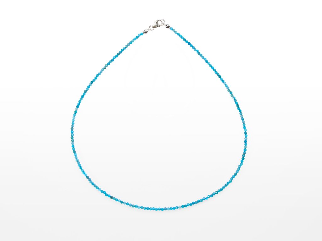 Stříbrná sada šperků apatit fazetovaný 2 mm (náhrdelník + náramek + náušnice)