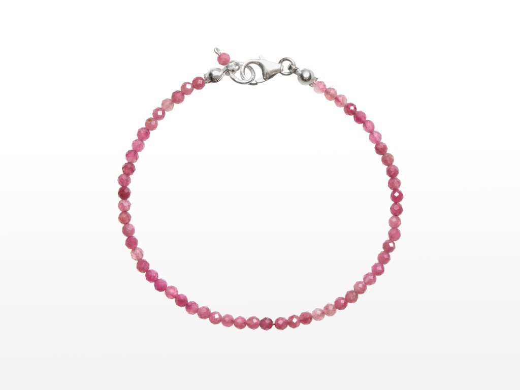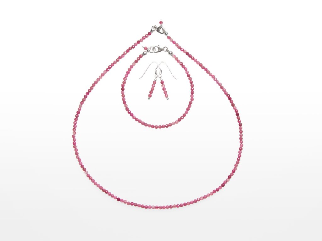 Stříbrná sada šperků rubelit fazetovaný 3 mm (náhrdelník + náramek + náušnice)