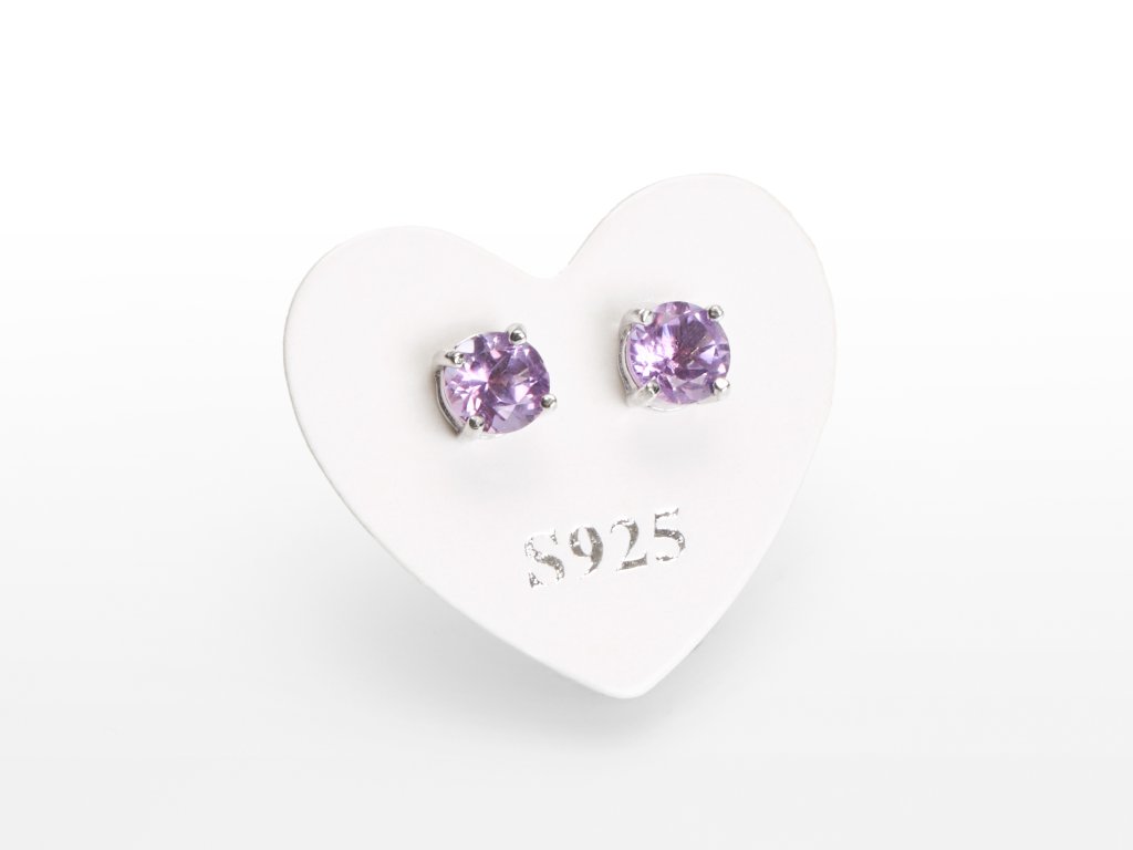 O produktu: Dopřejte si opravdový luxus a eleganci s našimi stříbrnými náušnicemi s drahokamy. Tento pár je osazen precizně fazetovaným ametystem kulatého tvaru o velikosti 5 mm. Šperk je zhotoven ze stříbra ryzosti 925/1000, které je platinováno pro zvýšenou odolnost a lesk. Drahokamy v náušnicích jsou pevně uchyceny stříbrnými krapnami. Zapínání je řešeno plastovou zarážkou; stříbrný motýlek (puzetka) lze separátně objednat.