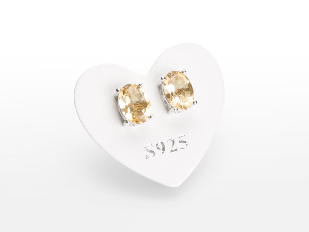 O produktu: Dopřejte si opravdový luxus a eleganci s našimi stříbrnými náušnicemi s drahokamy. Tento pár je osazen precizně fazetovaným citrínem oválného tvaru o velikosti 5 x 7 mm. Šperk je zhotoven ze stříbra ryzosti 925/1000, které je platinováno pro zvýšenou odolnost a lesk. Drahokamy v náušnicích jsou pevně uchyceny stříbrnými krapnami. Zapínání je řešeno plastovou zarážkou; stříbrný motýlek (puzetka) lze separátně objednat.