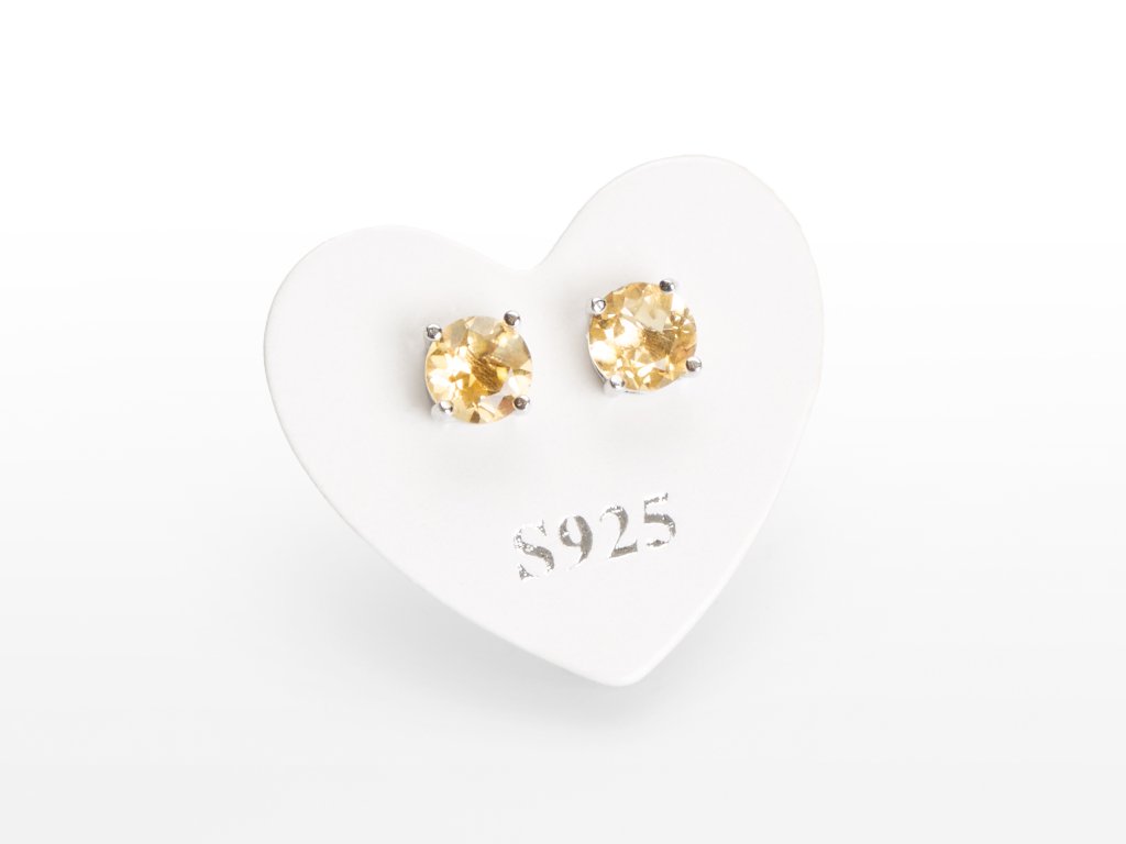 O produktu: Dopřejte si opravdový luxus a eleganci s našimi stříbrnými náušnicemi s drahokamy. Tento pár je osazen precizně fazetovaným citrínem kulatého tvaru o velikosti 5 mm. Šperk je zhotoven ze stříbra ryzosti 925/1000, které je platinováno pro zvýšenou odolnost a lesk. Drahokamy v náušnicích jsou pevně uchyceny stříbrnými krapnami. Zapínání je řešeno plastovou zarážkou; stříbrný motýlek (puzetka) lze separátně objednat.