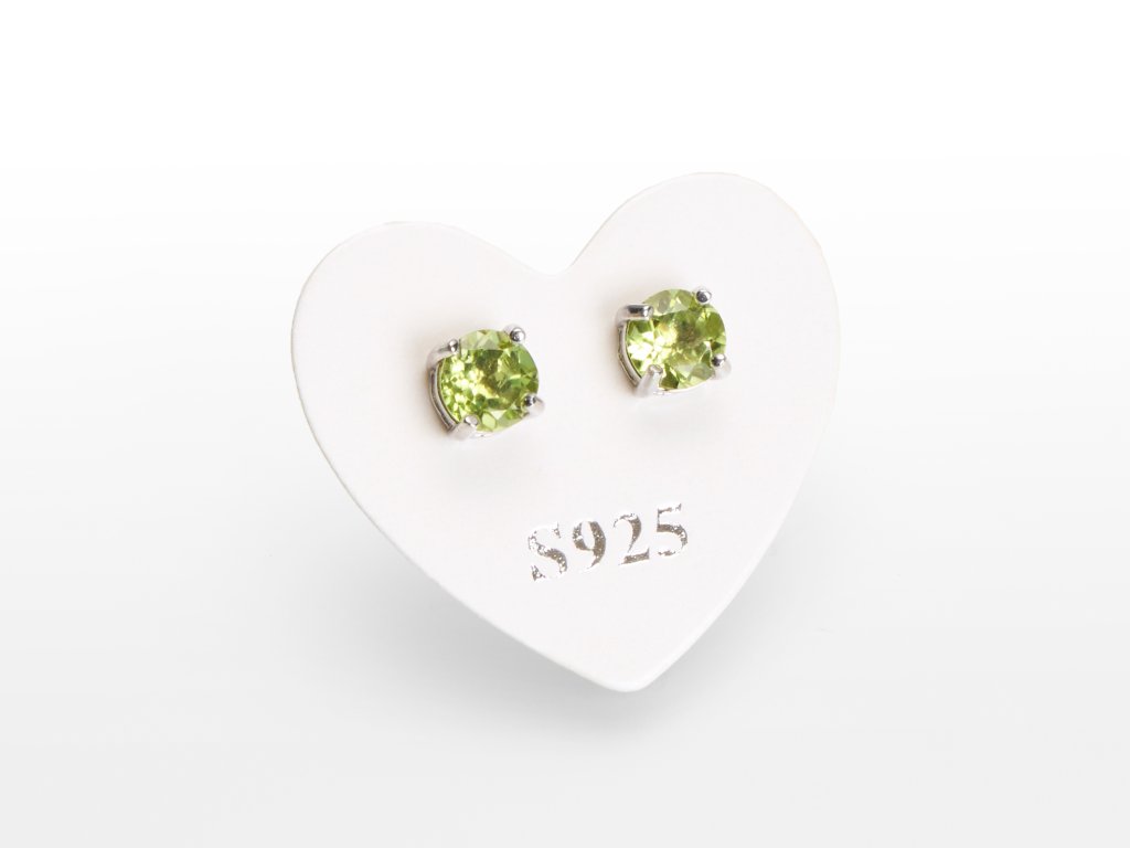 O produktu: Dopřejte si opravdový luxus a eleganci s našimi stříbrnými náušnicemi s drahokamy. Tento pár je osazen precizně fazetovaným olivínem kulatého tvaru o velikosti 5 mm. Šperk je zhotoven ze stříbra ryzosti 925/1000, které je platinováno pro zvýšenou odolnost a lesk. Drahokamy v náušnicích jsou pevně uchyceny stříbrnými krapnami. Zapínání je řešeno plastovou zarážkou; stříbrný motýlek (puzetka) lze separátně objednat.