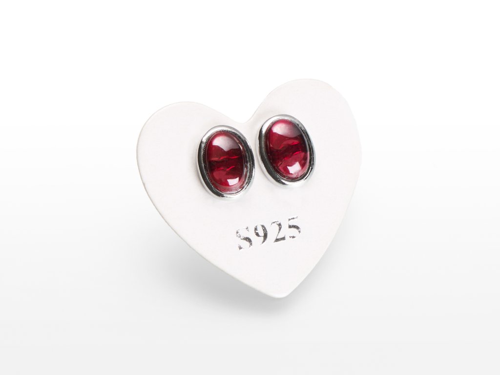 O produktu: Dopřejte si opravdový luxus a eleganci s našimi stříbrnými náušnicemi s drahokamy. Tento pár je osazen do hladka vybroušeným granátem oválného tvaru o velikosti 5 x 7 mm. Šperk je zhotoven ze stříbra ryzosti 925/1000, které je platinováno pro zvýšenou odolnost a lesk. Drahokamy v náušnicích jsou pevně vsazeny do stříbrné objímky. Zapínání je řešeno plastovou zarážkou; stříbrný motýlek (puzetka) lze separátně objednat.