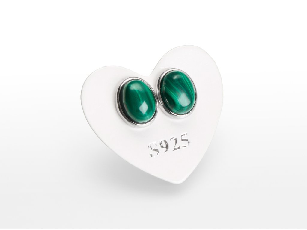 O produktu: Dopřejte si opravdový luxus a eleganci s našimi stříbrnými náušnicemi s drahokamy. Tento pár je osazen do hladka vybroušeným malachitem oválného tvaru o velikosti 6 x 8 mm. Šperk je zhotoven ze stříbra ryzosti 925/1000, které je platinováno pro zvýšenou odolnost a lesk. Drahokamy v náušnicích jsou pevně vsazeny do stříbrné objímky. Zapínání je řešeno plastovou zarážkou; stříbrný motýlek (puzetka) lze separátně objednat.