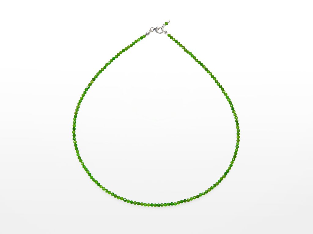 Stříbrný náhrdelník diopsid fazetovaný 3 mm