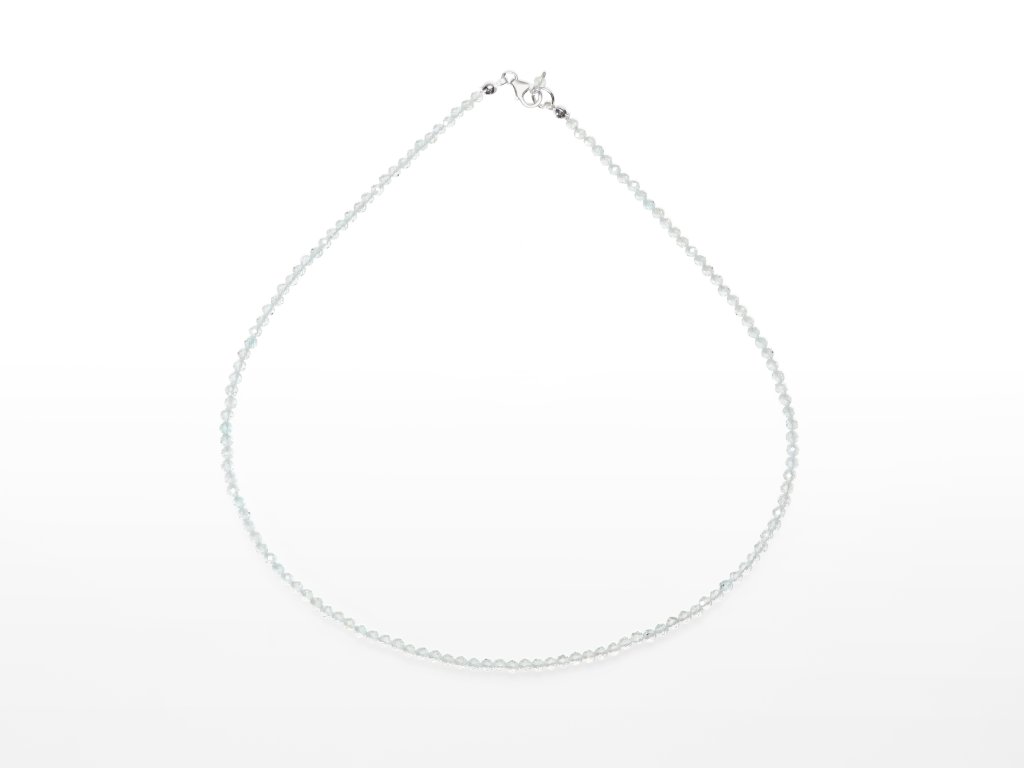 O produktu: Objevte eleganci v každém detailu se stříbrným náhrdelníkem z naší vlastní výroby. Precizně fazetované kuličky minerálu o velikosti 3 mm dodávají šperku nezaměnitelný třpyt a šarm. Šperk je pečlivě navlečen na pevném lanku z nerezové oceli a zakončen kvalitním zapínáním ze stříbra ryzosti 925/1000. Náhrdelník má délku 45 cm. Všechny stříbrné šperky zasíláme v dárkovém balení.
