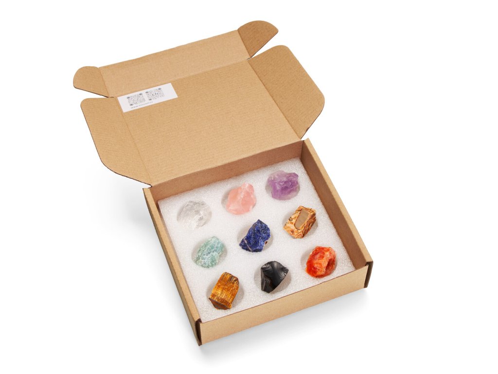Kameny jsou uloženy v elegantní a pevné dárkové krabičce z kvalitní lepenky. Díky praktickému zavírání a speciálnímu polstrování jsou kameny chráněny z obou stran, nemusíte se tak obávat poškození či rozsypání při přepravě.