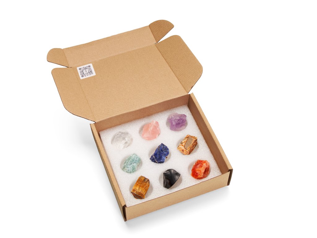 Bonus pro vás: Na vnitřní straně víčka najdete QR kód, který vás okamžitě navede na speciální webovou stránku se zajímavými informacemi o jednotlivých kamenech a jejich výskytu. Původ každého kamene vám ukážeme na mapě světa.