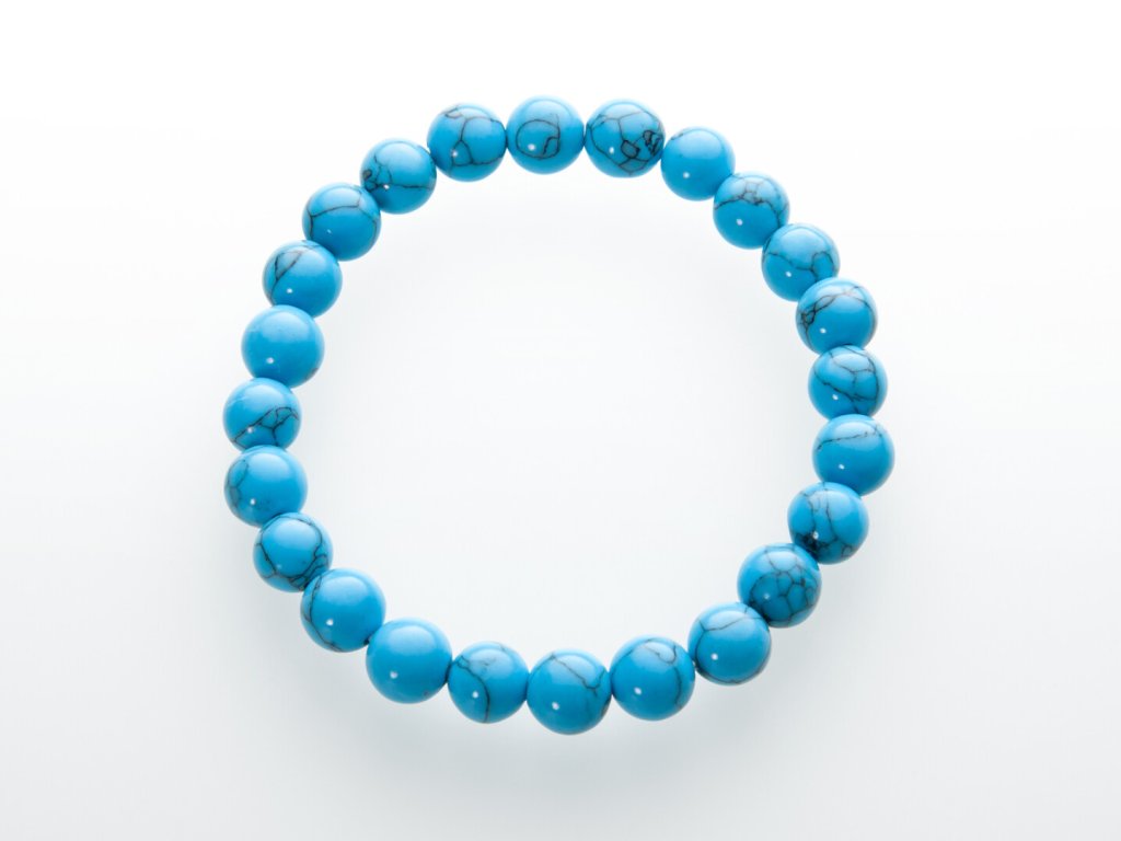 O produktu: Kuličkový náramek je nadčasová klasika. Tento kousek je vyroben z lesklých kuliček tyrkenitu o průměru 8 mm. Je navlečený na dvojité elastické gumičce o délce přibližně 19 cm. Je pružný a sedí každé velikosti.