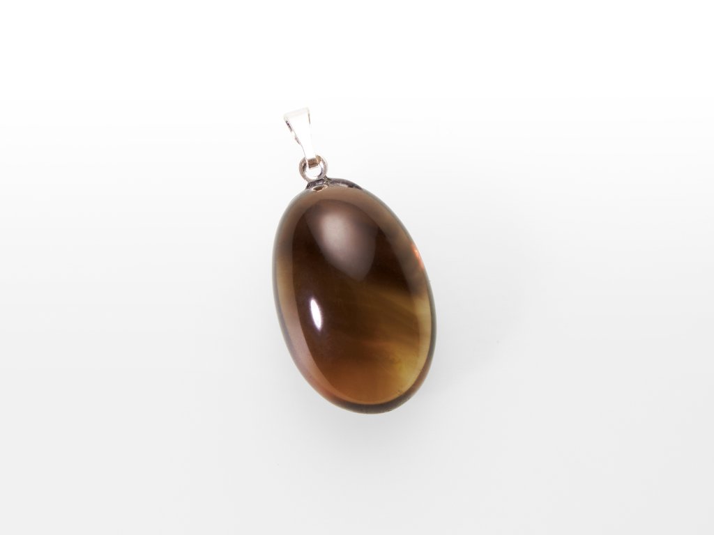 Popis kamene: Kouřově hnědá, průhledná nebo průsvitná, jejíž zbarvení často bývá nestejnoměrně „obláčkovité“. To je záhněda. Minerál, který za svůj barevný nádech vděčí příměsi hliníku, železa či ozáření. Surovina pochází z Brazílie. Z hlediska složení se jedná o odrůdu křemene.